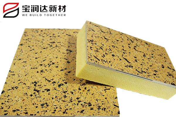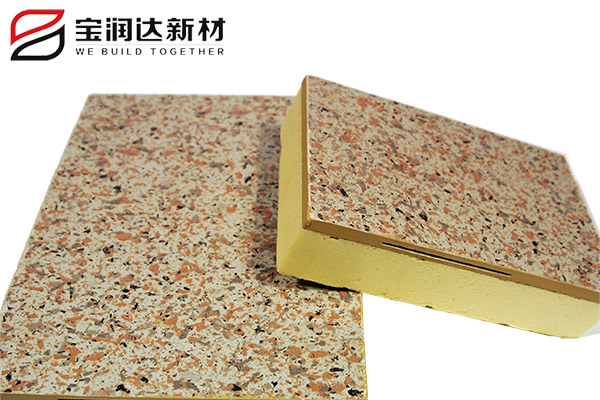 寶潤達(dá)一體板飾面層采用真石漆,多彩漆,水包水,水包砂,乳膠漆,實色/金屬氟碳超3000種顏色定制,可根據(jù)石材定做樣品