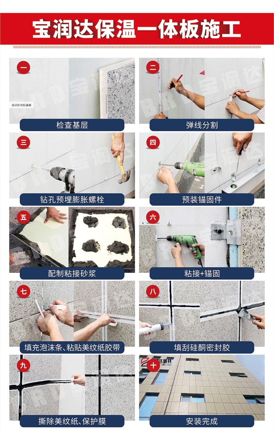 寶潤(rùn)達(dá)外墻保溫一體板施工九步驟