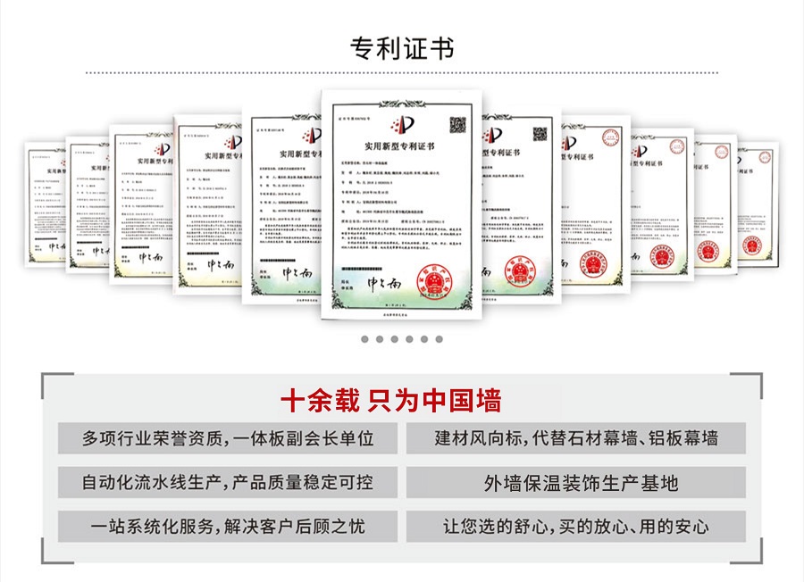 寶潤(rùn)達(dá)在保溫裝飾一體板領(lǐng)域的優(yōu)勢(shì),不僅僅只是建立在現(xiàn)代化的生產(chǎn)車(chē)間、先進(jìn)的制造工藝、卓越的產(chǎn)品性能上。寶潤(rùn)達(dá)自1996年涉足外墻裝飾領(lǐng)域以來(lái),積累了24年的行業(yè)經(jīng)驗(yàn),擁有一支行業(yè)高水準(zhǔn)的設(shè)計(jì)、安裝施工隊(duì)伍,真正具備集產(chǎn)品、設(shè)計(jì)、施工為一體,打造精品工程的能力。只要您給寶潤(rùn)達(dá)參與的機(jī)會(huì),我們就有十足的信心向您提供放心的系統(tǒng)化解決方案。