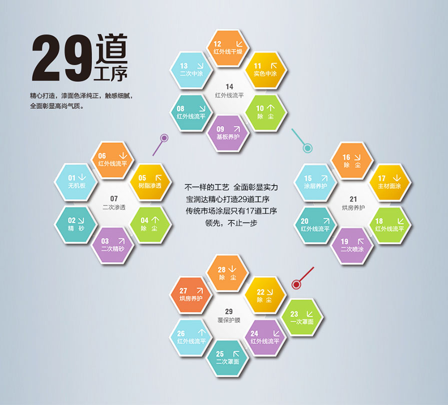 色彩統(tǒng)一 寶潤(rùn)達(dá)擁有系統(tǒng)化的色彩控制方案 完美的原材料供應(yīng)保障 40噸單缸產(chǎn)能 專(zhuān)業(yè)化的產(chǎn)品涂裝技術(shù) |